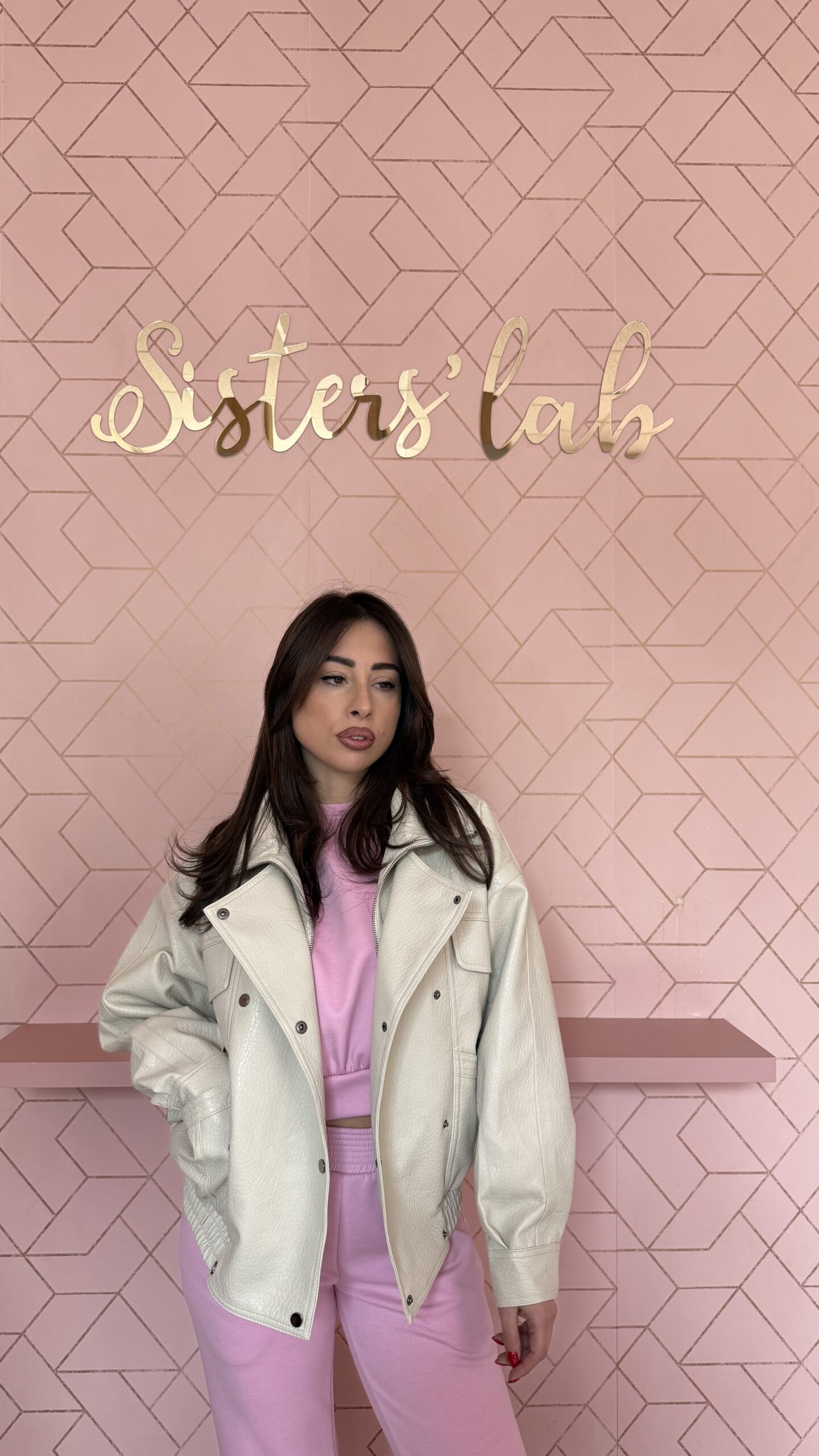 Giubbino in ecopelle martellata con collo alto e maniche lunghe
